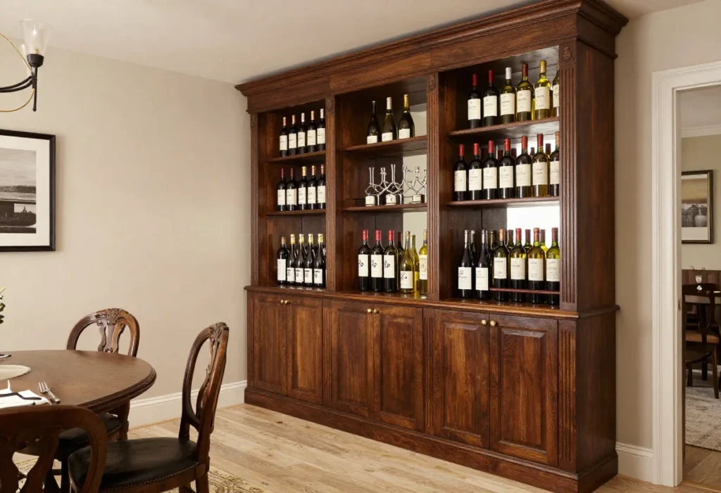 For truly compact homes, converting a small closet into a wine bar is a highly effective solution. Tall shelving accommodates bottles of various sizes, while custom racks and cubbies organize stemware and accessories. By utilizing a hidden space, you maintain a clean, uncluttered look in your living areas while creating a dedicated, bespoke wine suite that’s easy to access whenever needed.